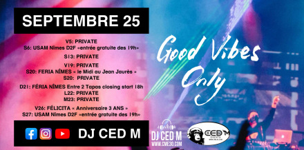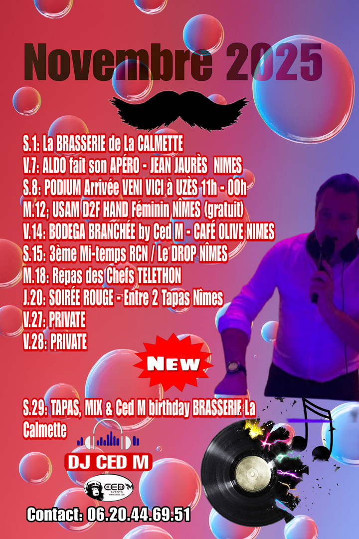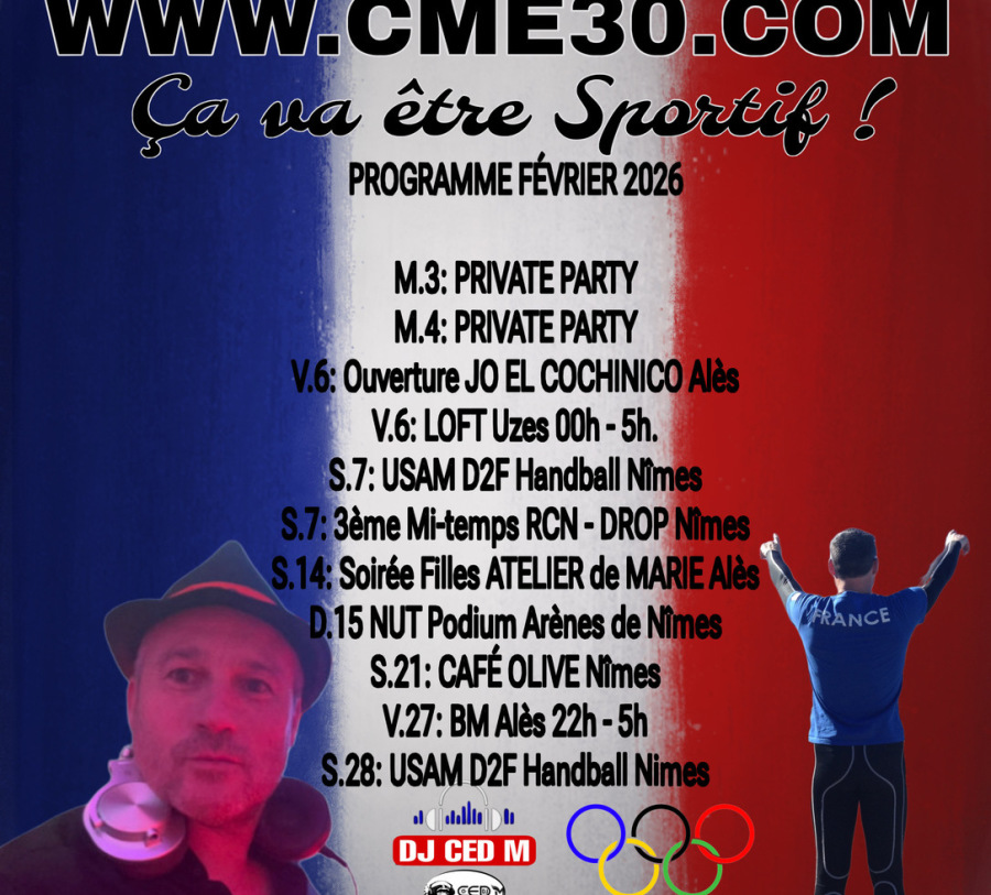 Aujourd'hui, je laisse la compétition de côté tout en restant actif dans des projets afin d apporter mes connaissances, mes compétences et mon énergie dans plusieurs projets qui me plaisent à travers CME 30. J'ANIME DES SOIREES / ÉVÉNEMENTS (Férias / Fêtes /Entreprises / Privées....) pour vous donner du plaisir ! Quand on va bien dans sa tête et son corps... tout est plus facile. La Fête & Le Sport se complètent à condition de ne pas faire d'abus... Je vous invite à découvrir de nouveaux projets qui me tiennent à cœur !" DJ CED M ou Ced